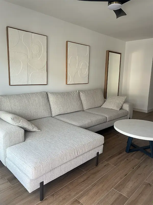Este proyecto consistía en amueblar un apartamento en la Playa de Gandía, pensado para una familia de Madrid que viene a disfrutar de sus vacaciones junto al mar. La idea era clara: querían una vivienda funcional, fresca y acogedora, donde sentirse bien desde el primer día.