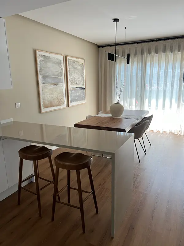 Cada ambiente fue pensado para ser vivido a diario: desde el salón donde compartir momentos juntos, hasta zonas con almacenaje optimizado que aportan orden y comodidad. Todo con materiales duraderos, fáciles de mantener y con un toque de estilo personal.