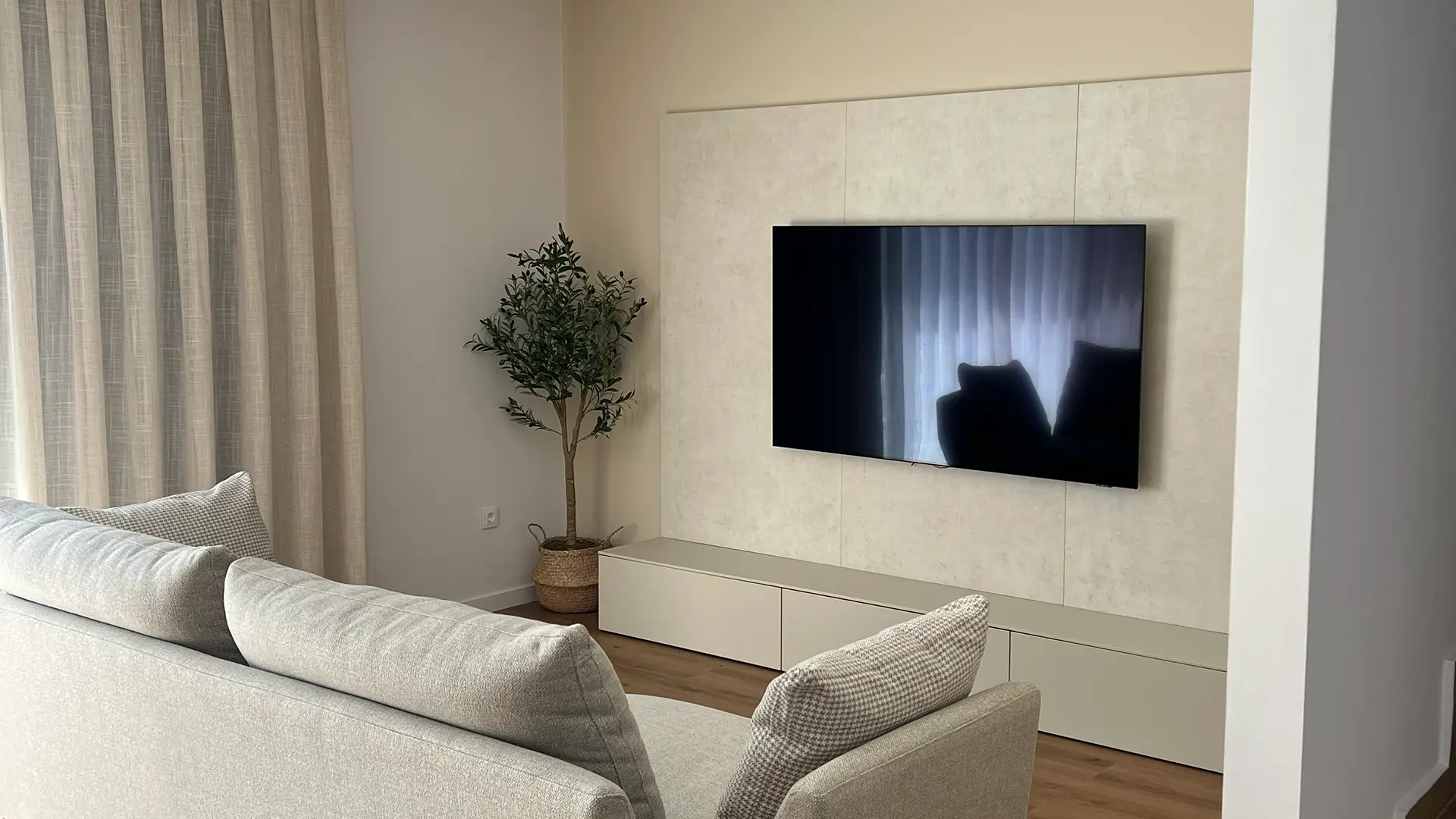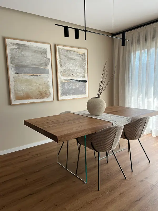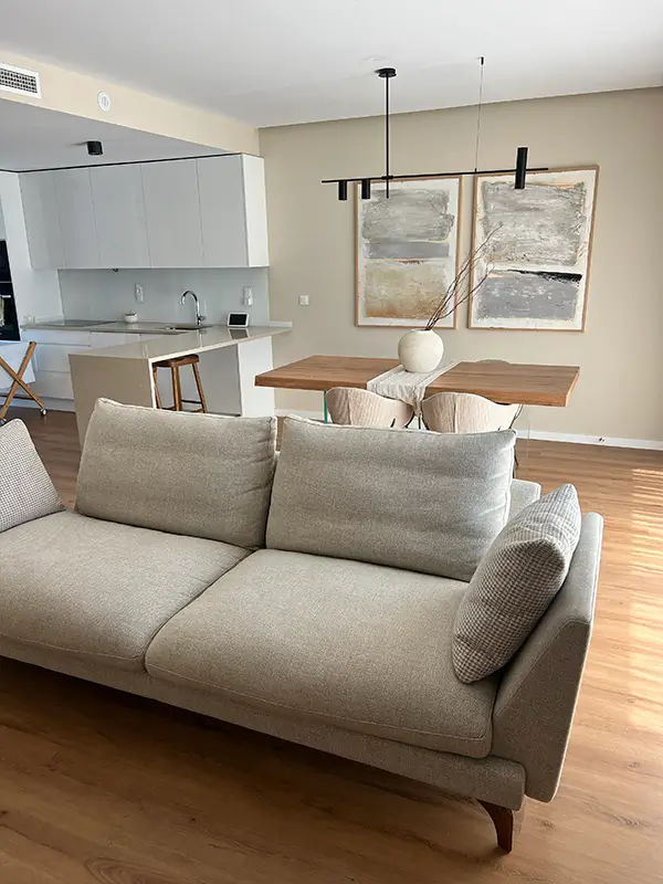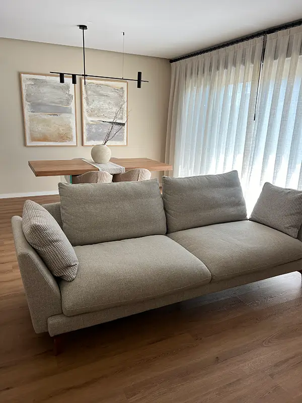 Este proyecto fue especialmente emotivo: una pareja de papis primerizos que estrenaba casa y quería convertirla en un verdadero hogar para empezar su nueva vida en familia. Nuestro objetivo fue crear espacios cálidos, funcionales y preparados para crecer con ellos. Apostamos por muebles prácticos, colores suaves y una estética neutra y acogedora, perfecta para acompañar los primeros años con su bebé y futuras etapas.