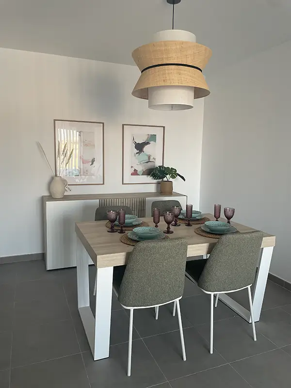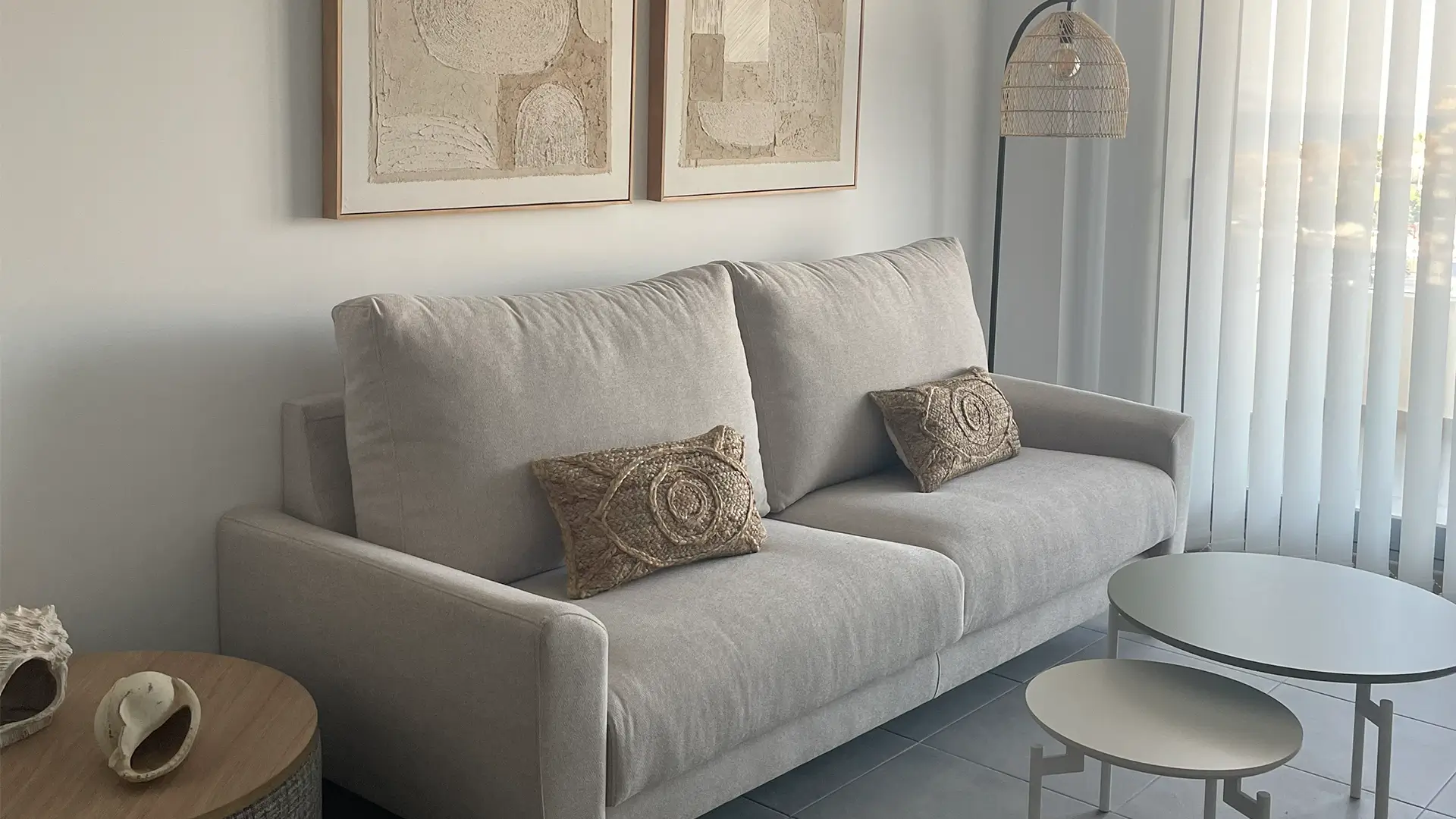 En este piso piloto en Daimuz, ubicado frente al mar, el reto era claro: amueblar una vivienda de dimensiones reducidas de forma funcional, estética y lo suficientemente neutra como para atraer a cualquier tipo de comprador.