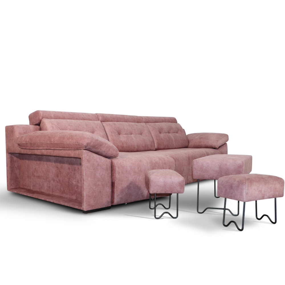 Sofá chaise longue deslizante de carro, disponible en varios tamaños. Sus asientos son rectos y se deslizan haciendo crecer el fondo del asiento 43 cm, ¡incluido el chaise longue, que crece 25 cm!