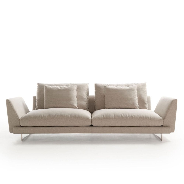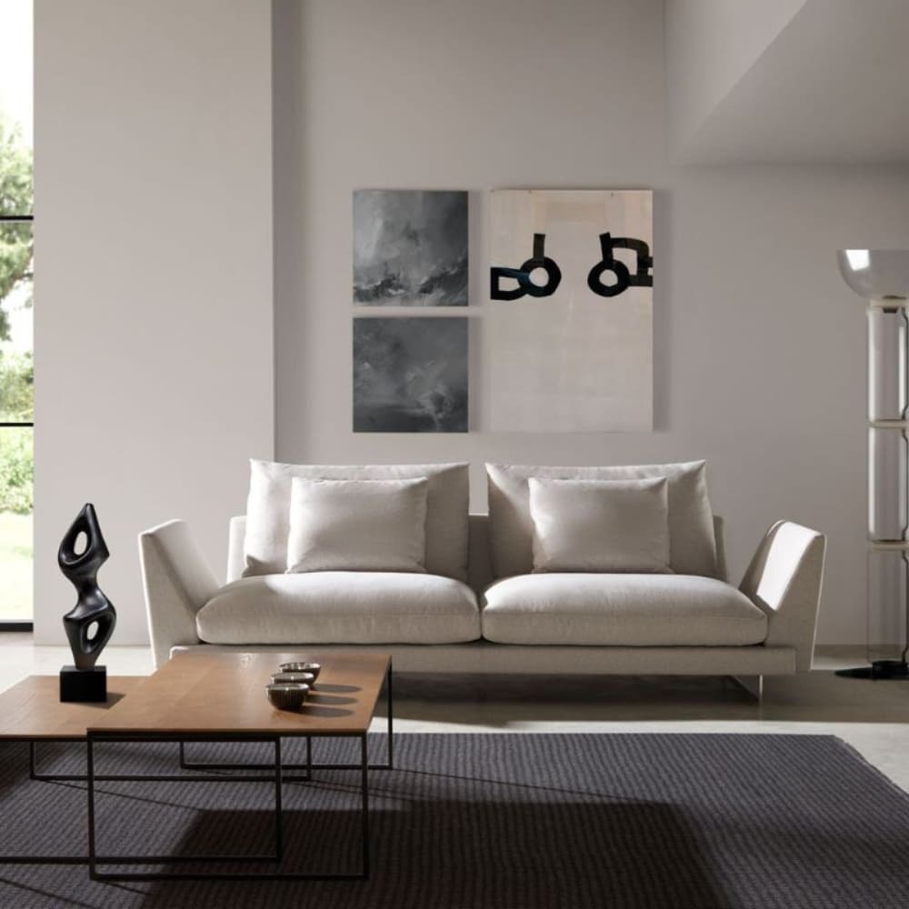 Los asientos, amplios y mullidos, ofrecen una sentada muy confortable sin perder firmeza, convirtiendo al Edai en un sofá ideal para uso diario. Su estructura ligera y sus líneas suaves aportan equilibrio visual y hacen que encaje fácilmente en cualquier estilo de hogar.