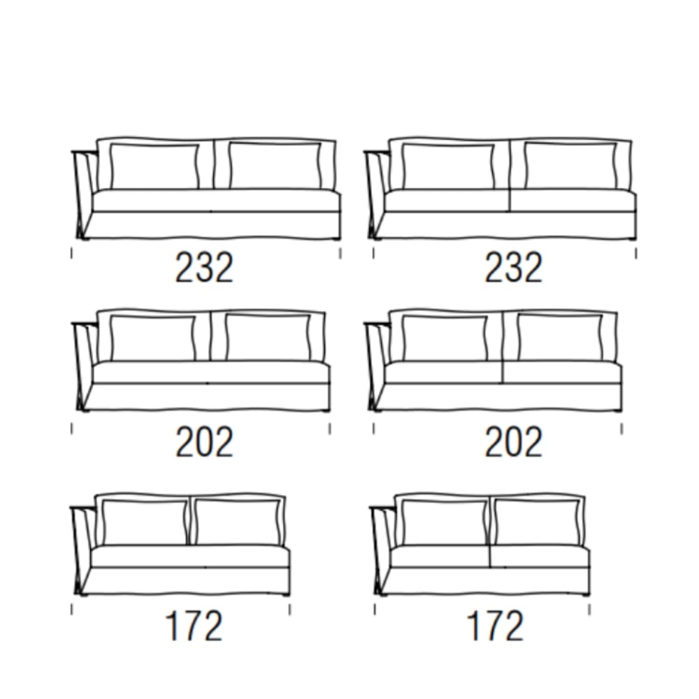 - Versiones y medidas múltiples: sofás, chaiselongue y composiciones rinconeras.